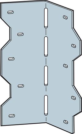 Galvanized steel CE and ETA certified adjustable angle bracket. Designed for securing wooden elements at irregular angles, these angle brackets can be bent from 0° to 135°. The staggered hole pattern reduces the risk of wood splitting and allows installation on both sides of the element. LS brackets can also be used for steel.