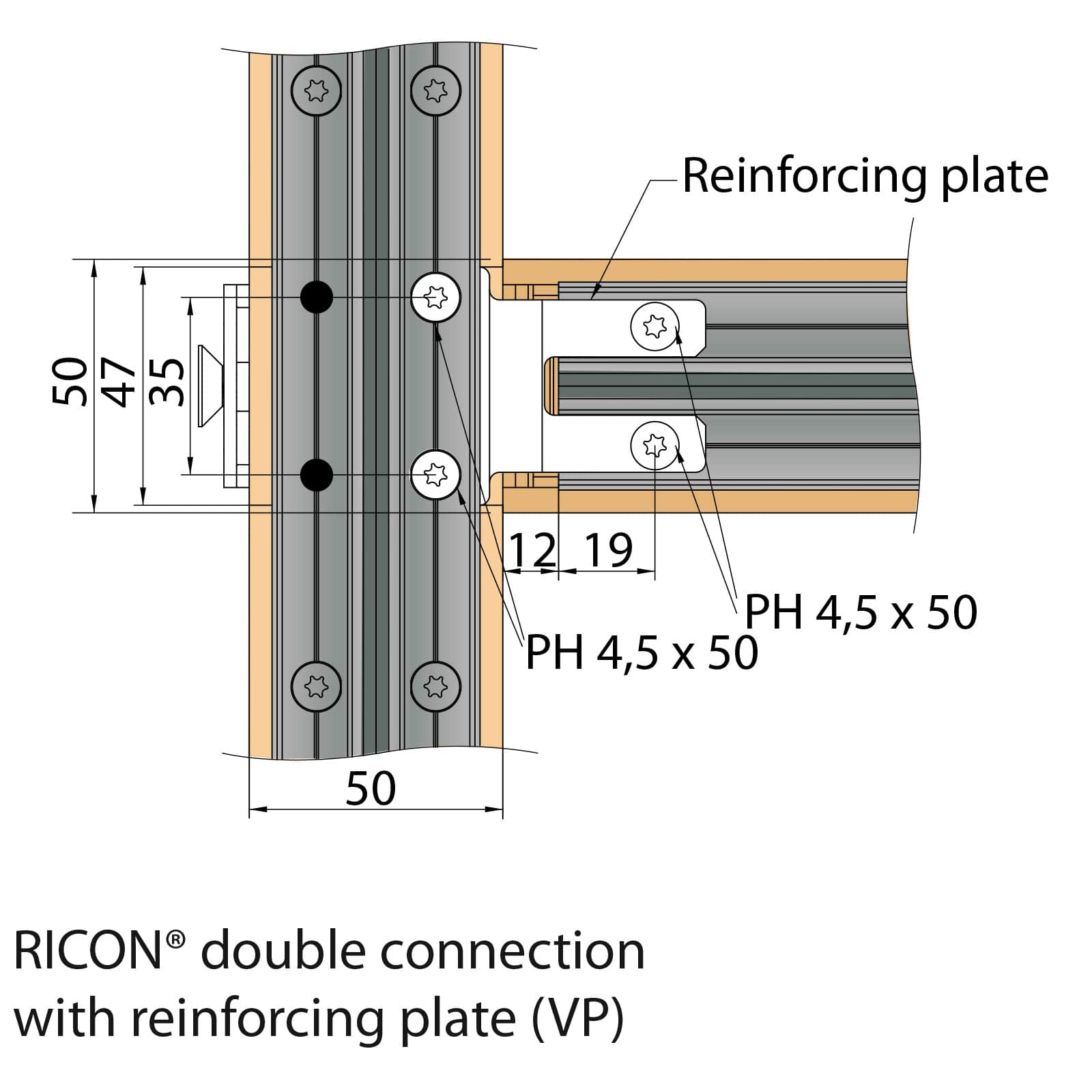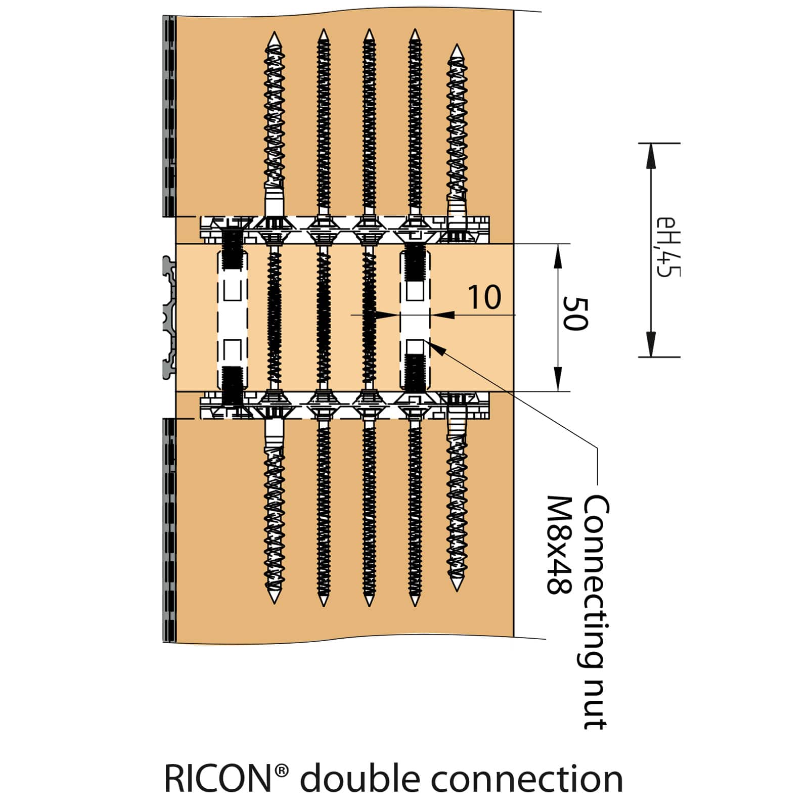 1. Due to the tail shape, the RICON supporting CS screws fit optimally. Due to the short pressing distance, it is easy to hook, and the plate connection ensures tightness and quick assembly of elements.
