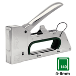 Lightweight and easy-to-use metal stapler, ideally suited for demanding professional tasks and precise operations. Exceptional performance and durability mean that the R14E can easily handle regular use. This model is particularly suitable for users with smaller hands and can be employed for various tasks, including fastening thinner materials such as insulation, moisture-resistant coverings, plastic sheeting, tarpaulin, cardboard, or other items requiring a high level of fastening strength.