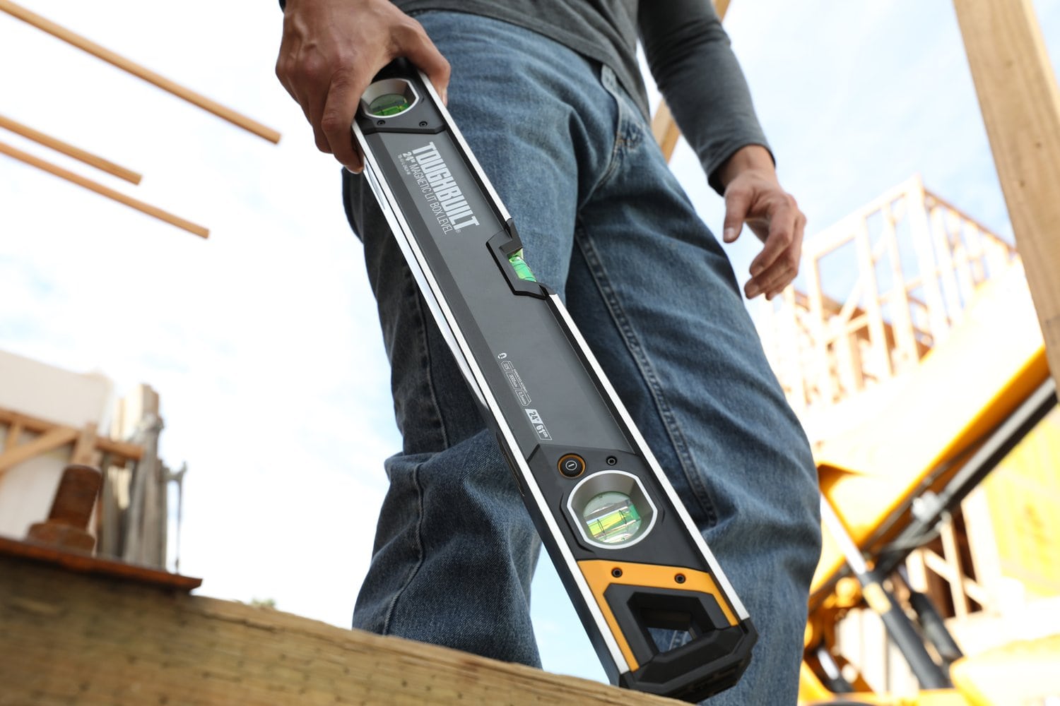 The ToughBuilt 60 centimeter illuminated magnetic level uses LED illuminated vials to make it easier to see the readings.