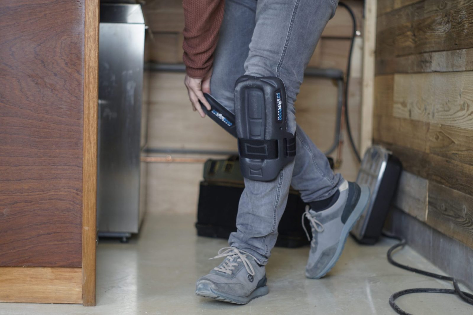 This technology distributes pressure evenly across the entire knee surface, allowing the knee to "float" in the protector.