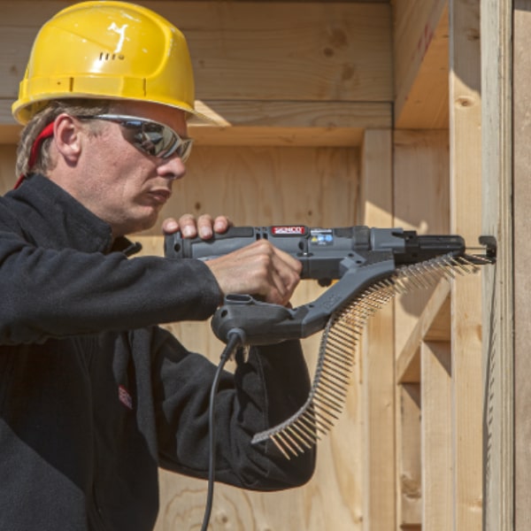 The rapid speed, well-balanced performance ensures unparalleled efficiency and practicality even for the most demanding industry experts and professionals. Equipped with Senco's patented automatic screw feeding system combined with a nosepiece that does not obstruct the view of the contact point between the screw and the surface, allowing screws to be driven into tight spaces that cannot be accessed by other automatic feed screwdrivers available on the market. Reduced trigger resistance allows for all-day driving with less resistance and load on the screwdriver's motor. (A special bit is required for screws of 13 - 25 mm.)