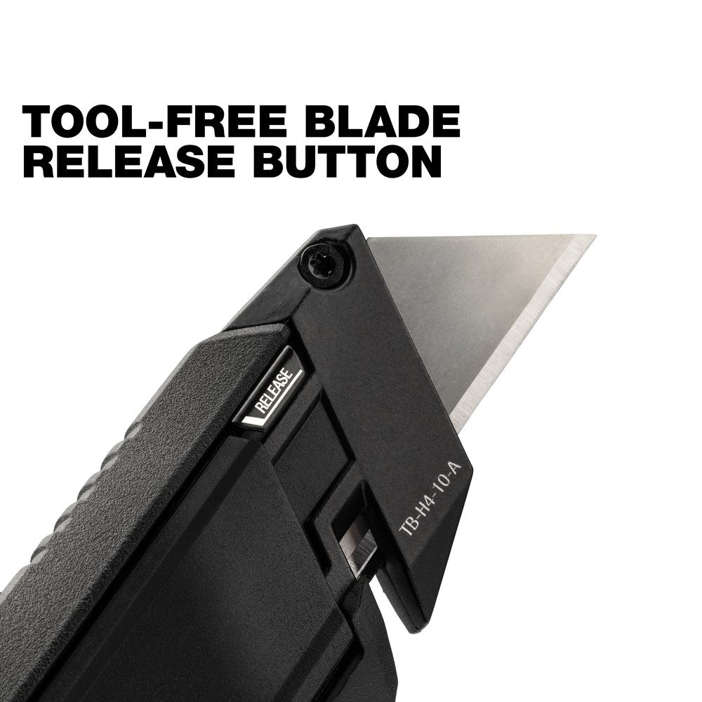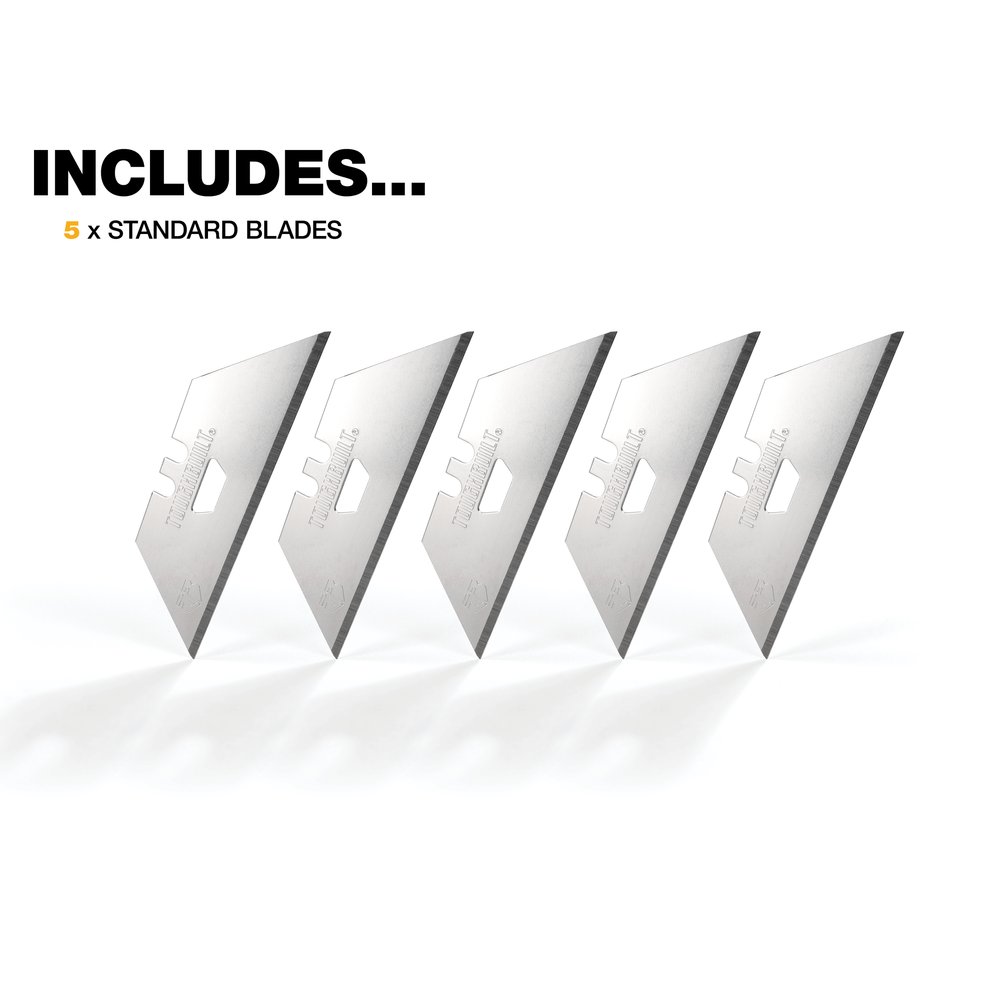 The "ToughBuilt" automatically reloading knife is designed with convenience and versatility in mind. The new blade is loaded by pressing the slider.