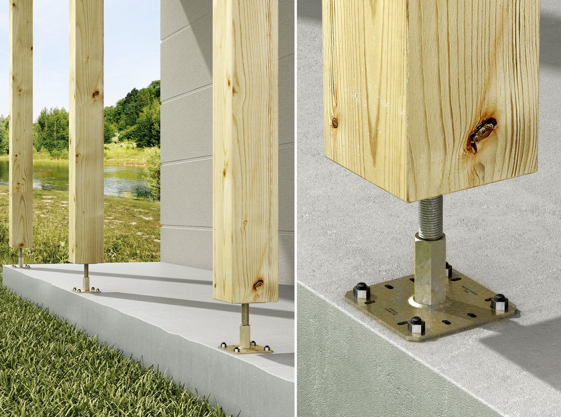 Adjustable pole, designed for attachment to a finished foundation. Engineered for vertical load bearing.