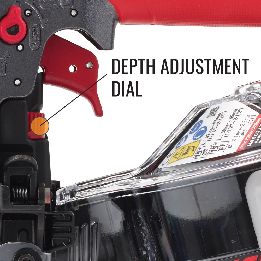 - MAX HN65S has 2 easily removable contact noses. This feature allows the HN65S to shoot from 2.1 mm to 3.3 mm diameter nails;