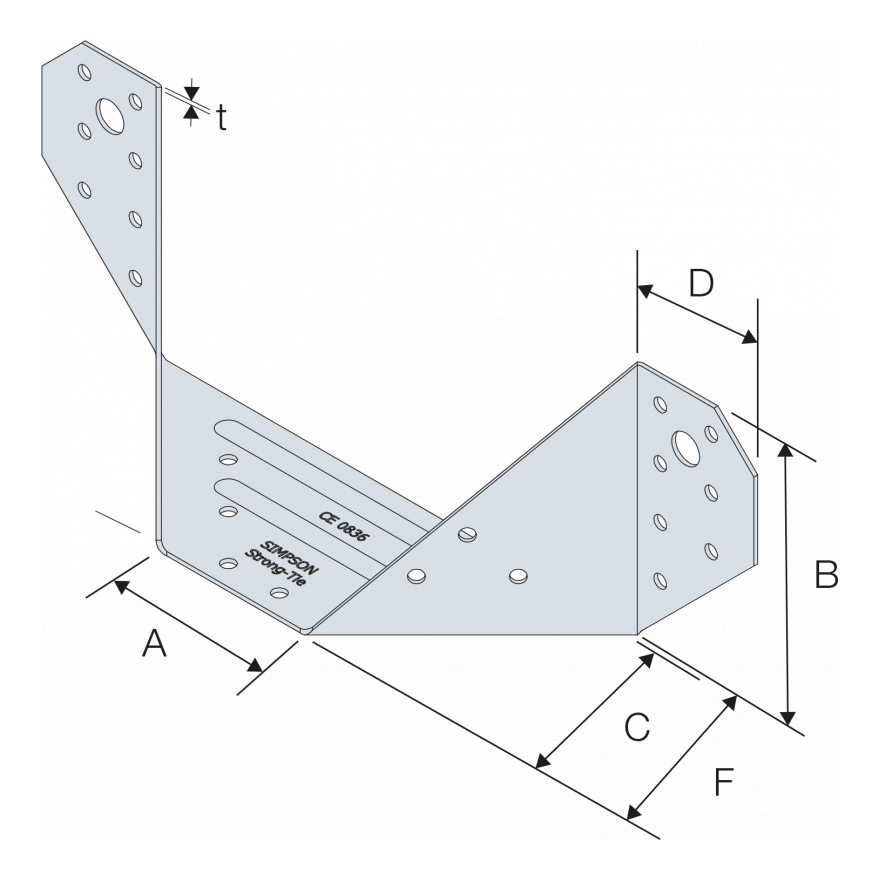 Galvanized steel 20 µm. The bracket features a 45° angle (to the left and right). ET CE and ETA certified brackets are used to support sloped wooden beams and elements. Tested and standardized with a 45° slope angle to the left or right.