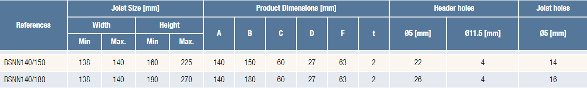 Joist width: 138-140 mm