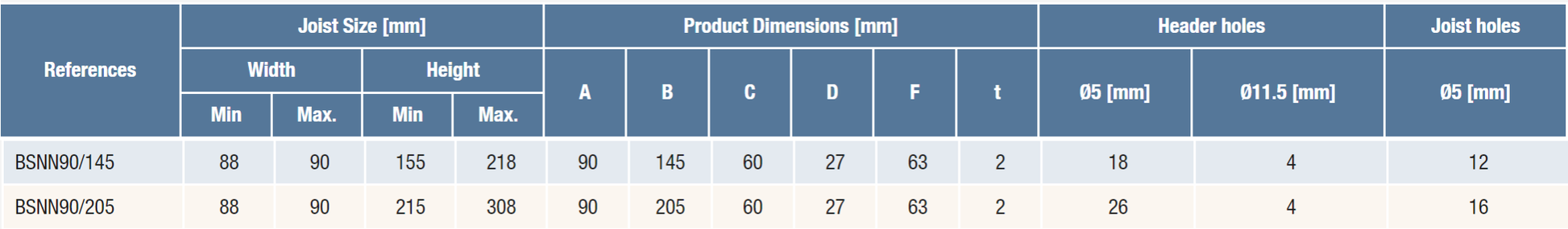 BSNN90/205 - Beam Holder (90 x 205 mm)