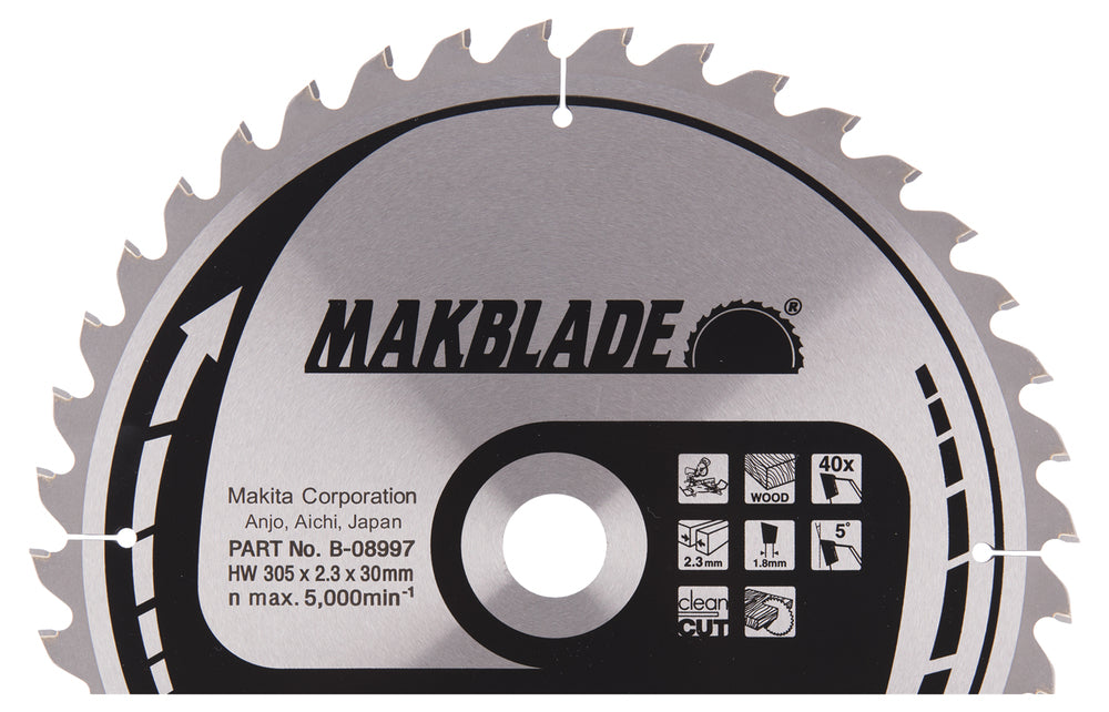 Makita MAKBLADE Saw Blade 305x2.3x30 mm 5° T40 – Wood Cutting (B-08997)
