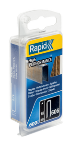 Rapid 606/18 mm narrow clips for professionals. Recommended for use with hard and thick materials. Suitable for both outdoor and indoor applications, thanks to the galvanized surface that is resistant to rust. The resin layer increases joint strength, making the clip harder to pull out. Ideally suited for securing floors, skirting boards, wooden panels or OSB, wooden structures, and partitions. The clip ensures optimal material penetration, thanks to its precisely cut legs.