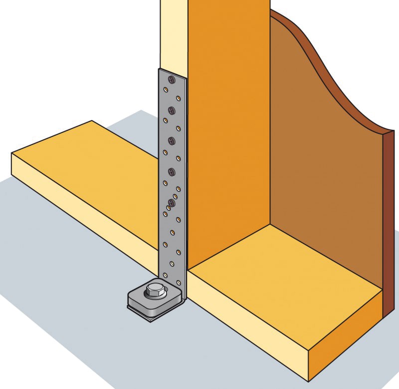 These straps are designed for Simpson Strong-Tie products. When used with corner braces, they strengthen the connection between the column and the bottom plate, preventing the column from rising.