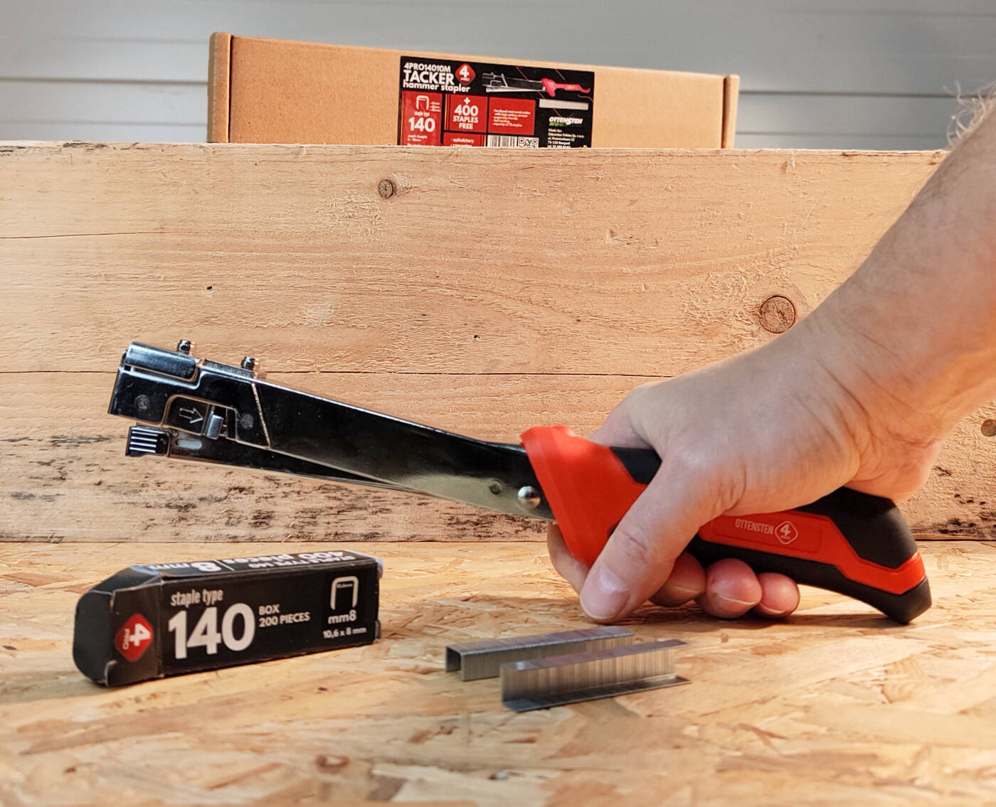 The 4PRO14014 stapler uses standard 140 type staples, which are known in the industry as reliable fastening parts. In the set, you will also receive 400 of these high-quality staples, which perfectly match this tool.