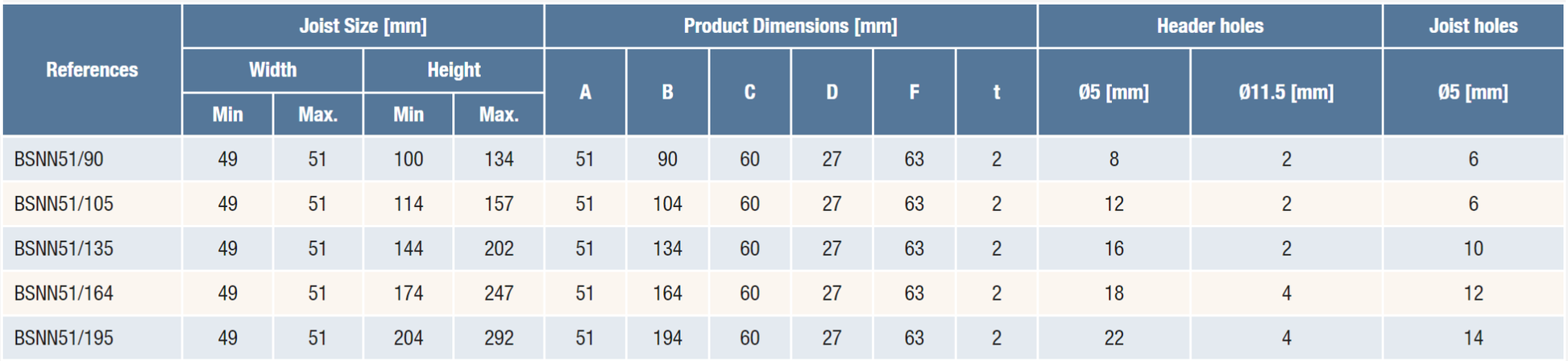 Product description and full specifications on the manufacturer's website: Face Fix Hangers - BSNN | Simpson Strong-Tie (strongtie.lv)